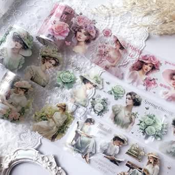 Estetiškos washi juostelės su merginų ir gėlių motyvais – 3 ritiniai, skirti dienoraščiams ir dekoravimui